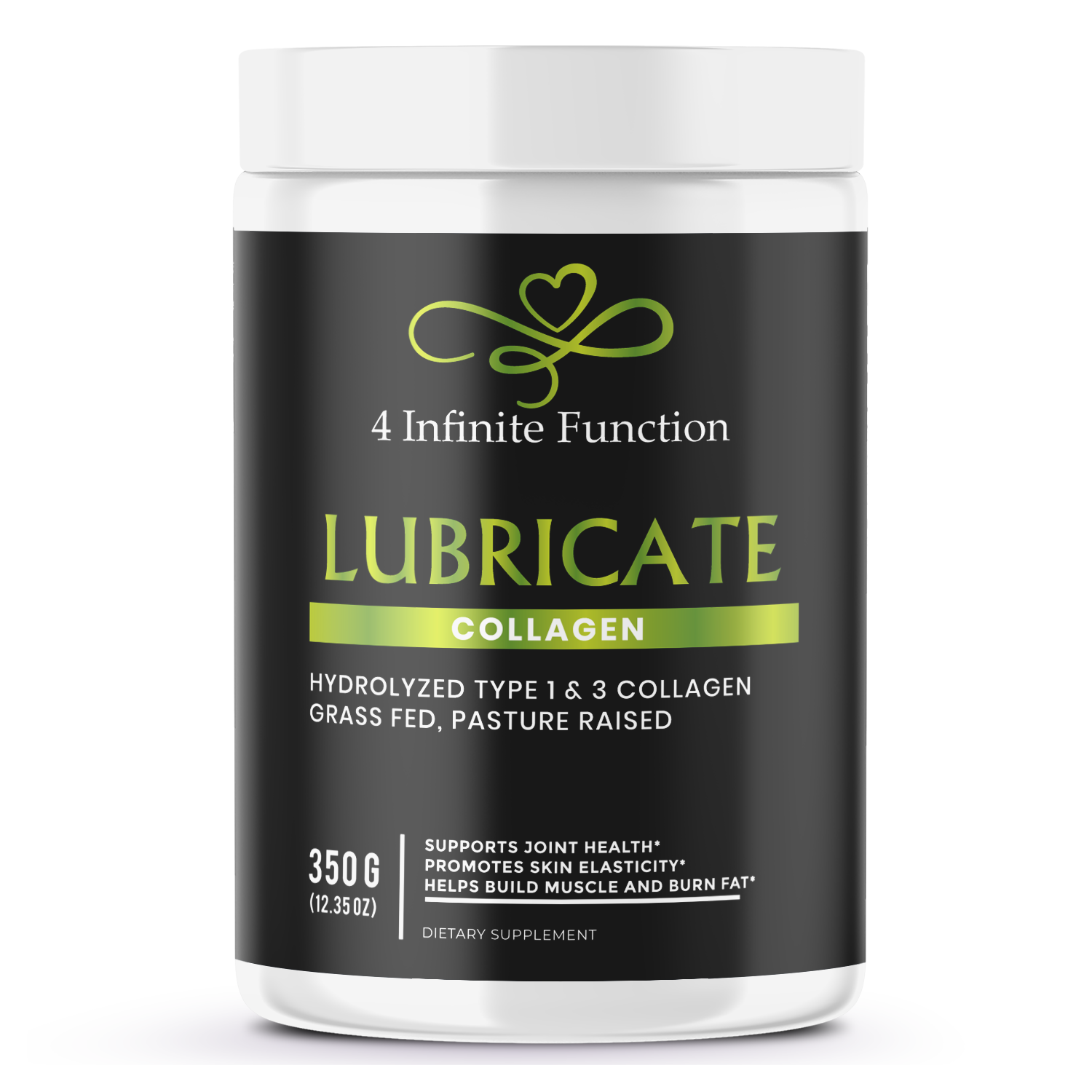 Lubricate Collagen is synthesized utilizing grass-fed collagen peptides from healthy cows and provides nutrient-rich type I and III collagen peptides.