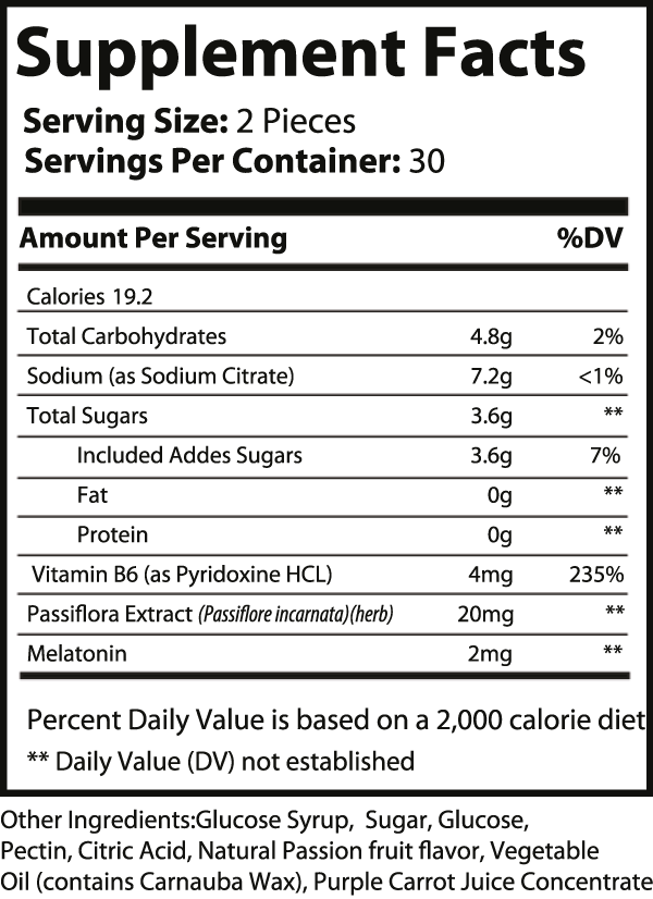 | Suggested Use: As a dietary supplement, take two (2) gummies before bedtime. |